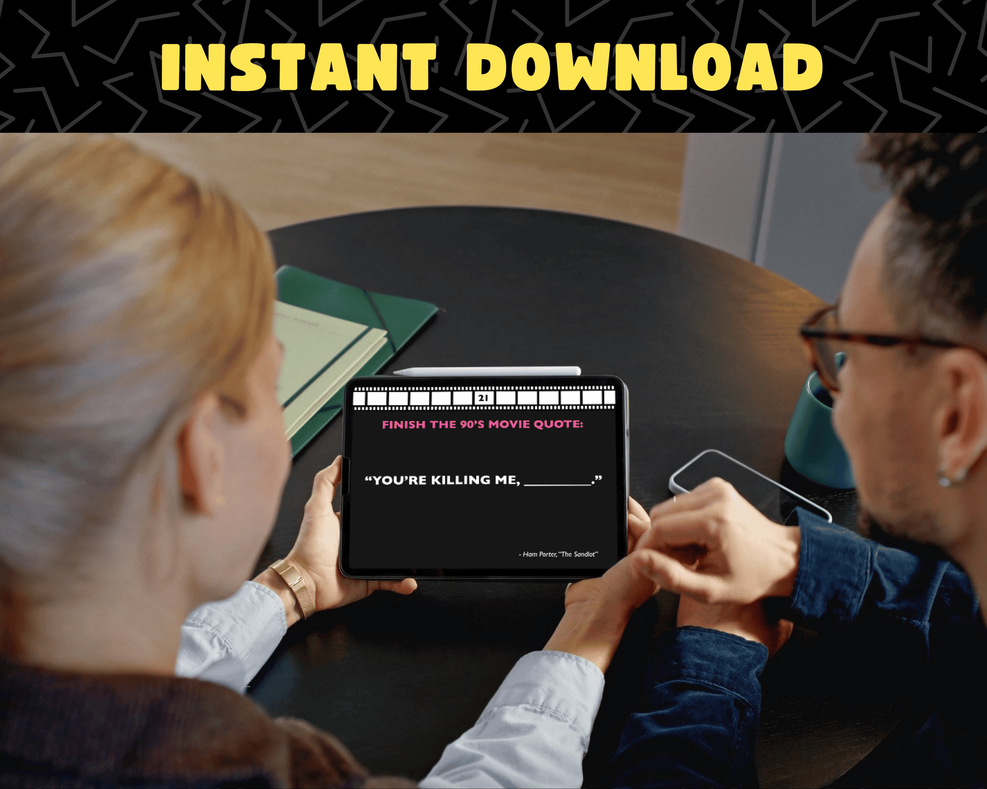 The 90'S MOVIE TRIVIA GAME has 6 rounds and 60 questions that will test your knowledge on all-things movies from the 90's.