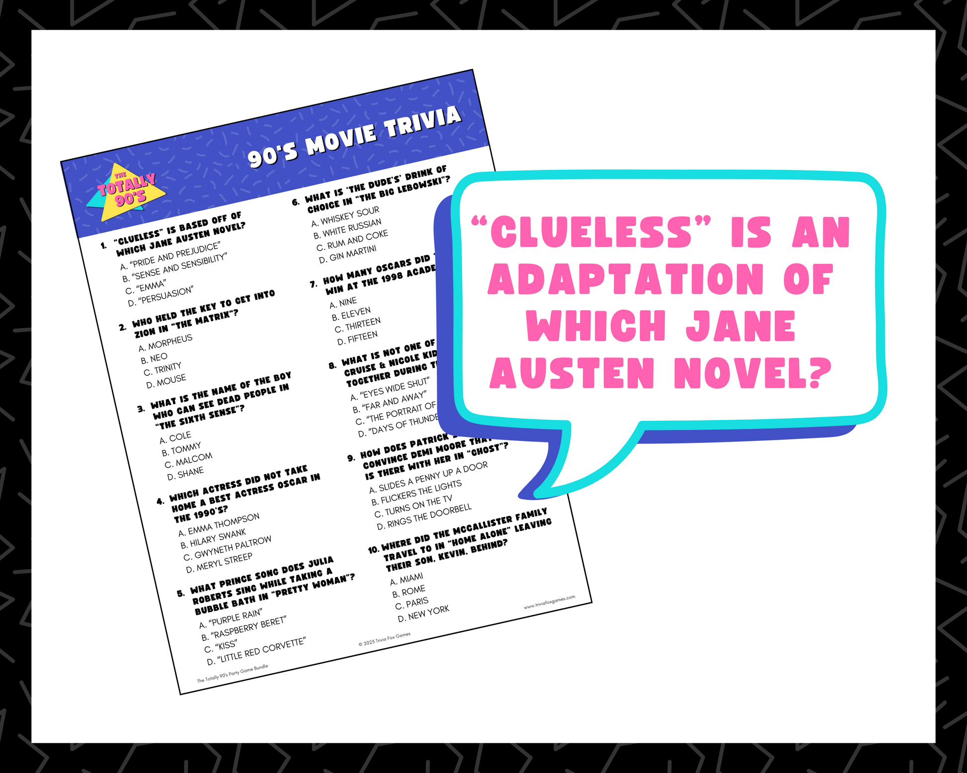 90's Trivia Printable Game Bundle