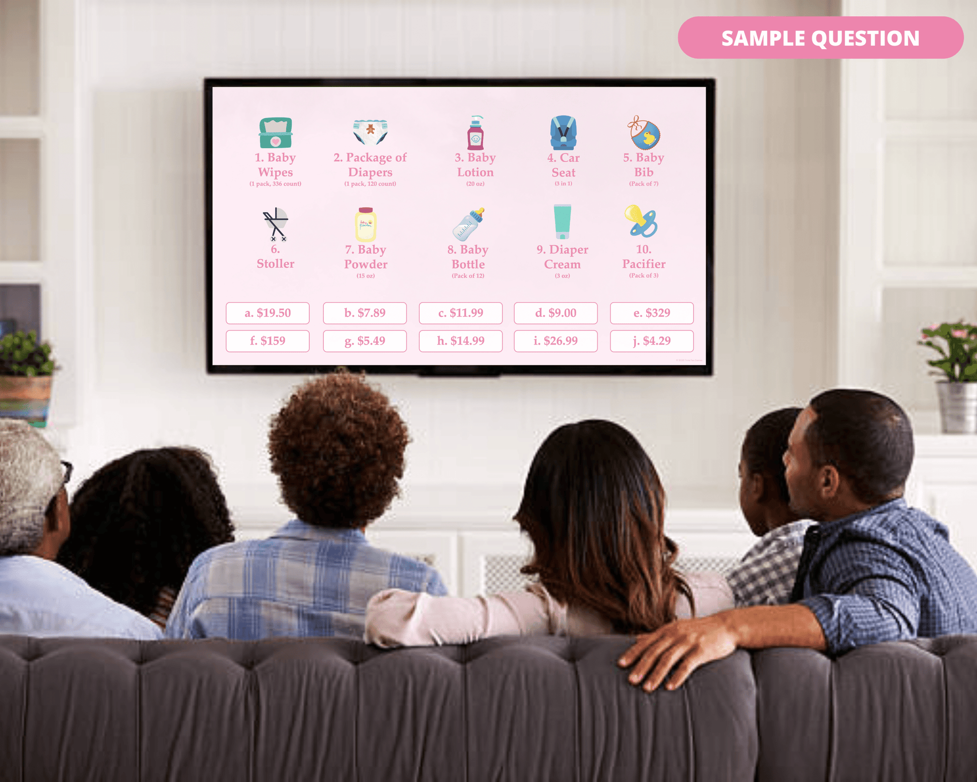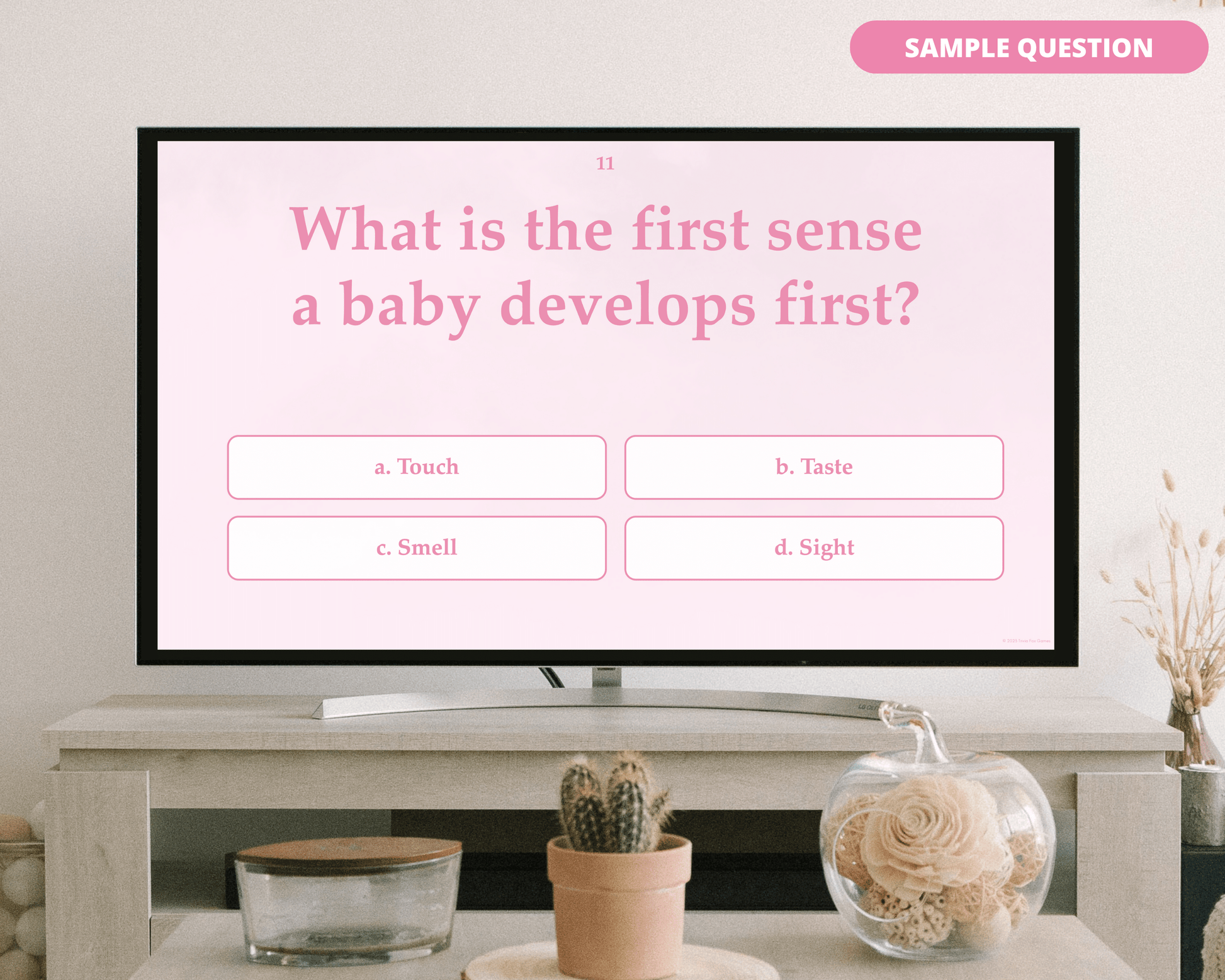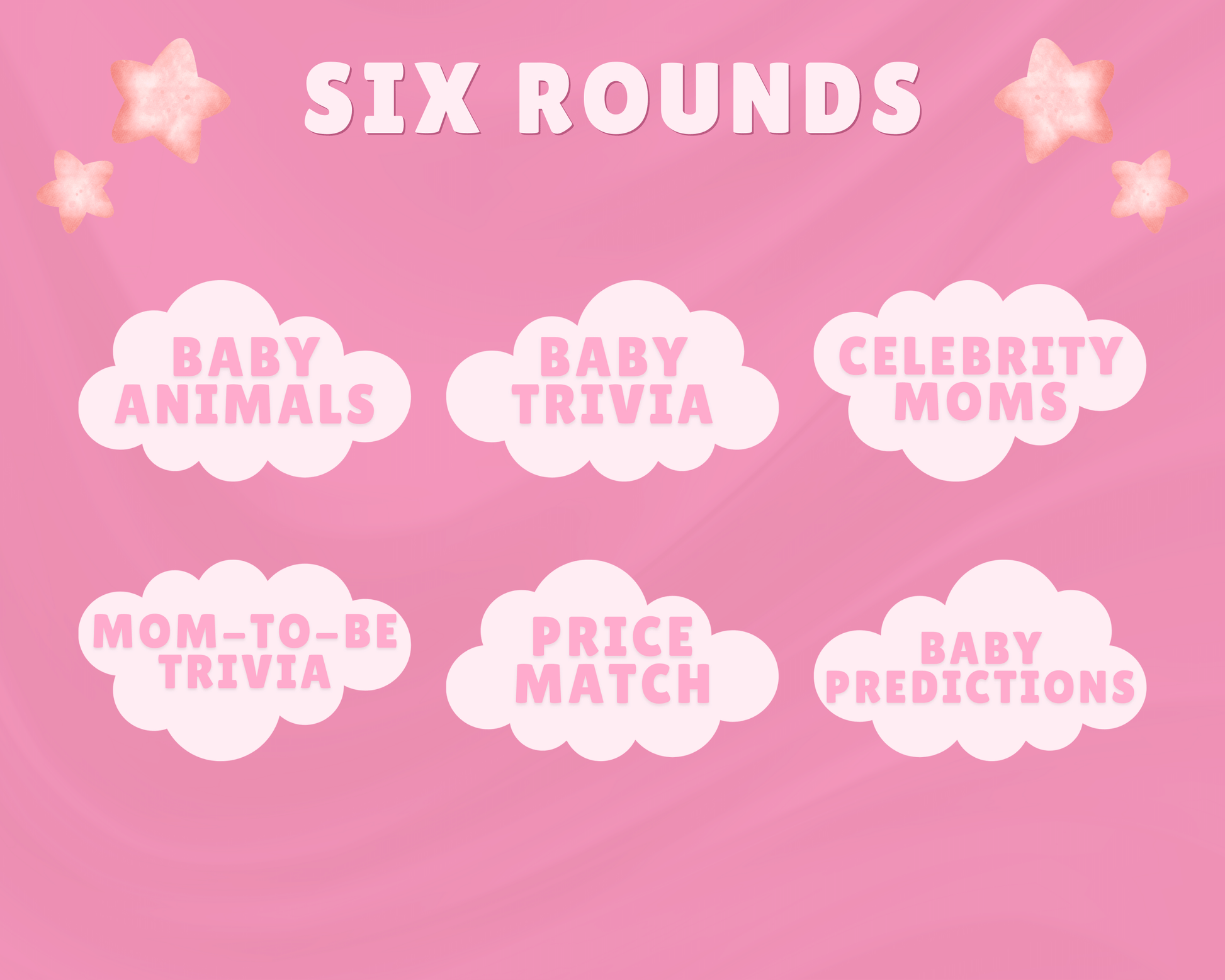 The Baby Shower Digital Party Game (Girl Edition) is the perfect activity to use at your next Baby Shower! With 6 rounds and over 50 questions, your guests will be having a blast trying to answer questions about the mom-to-be, baby animals, and much more!