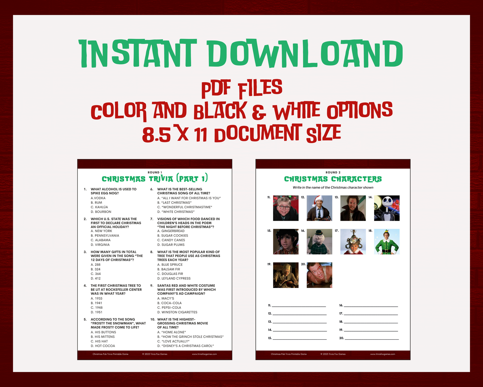 • Christmas Pub Trivia Printable Game Black & White (PDF)