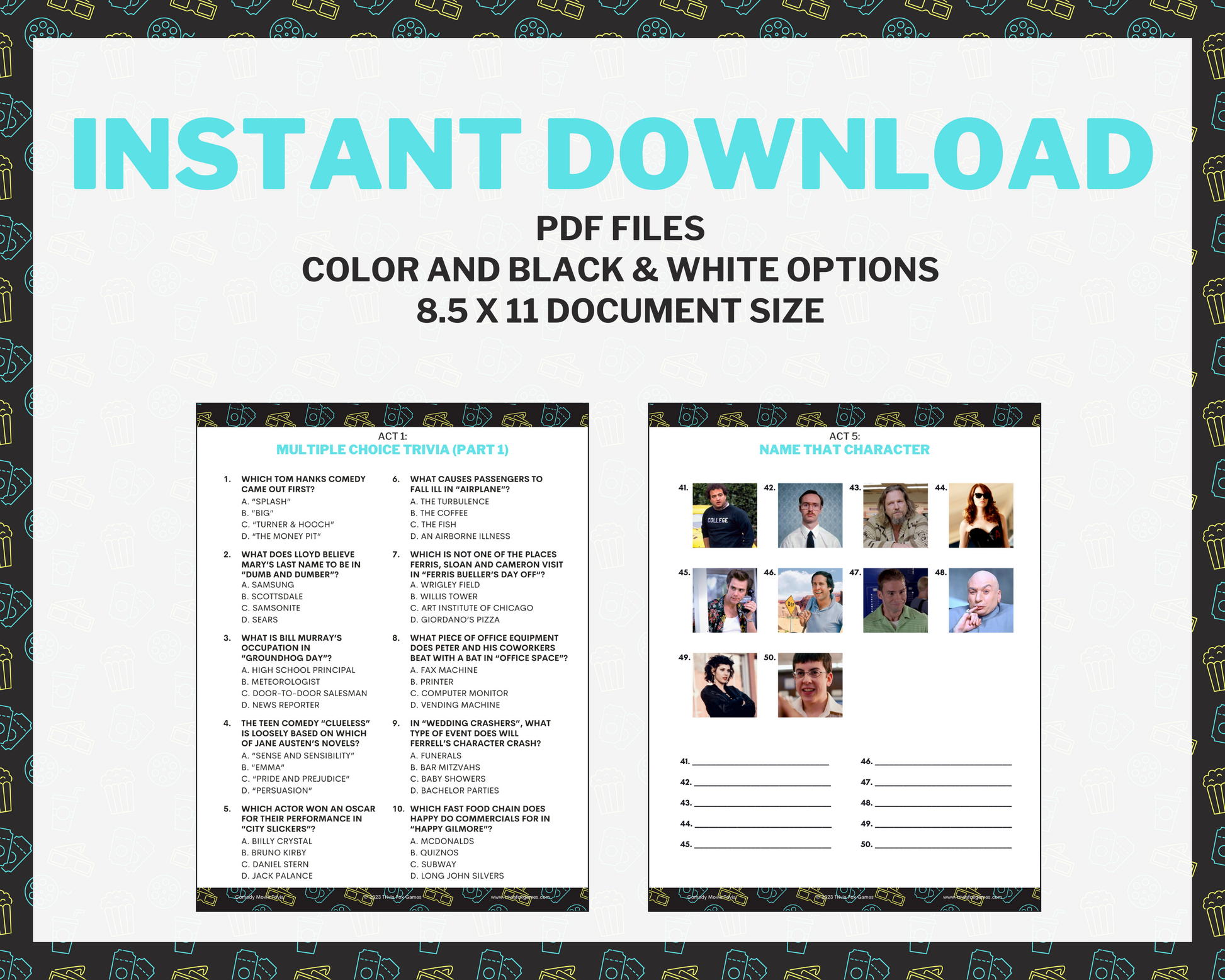 • Comedy Movie Trivia Printable Game - Black & White (PDF)