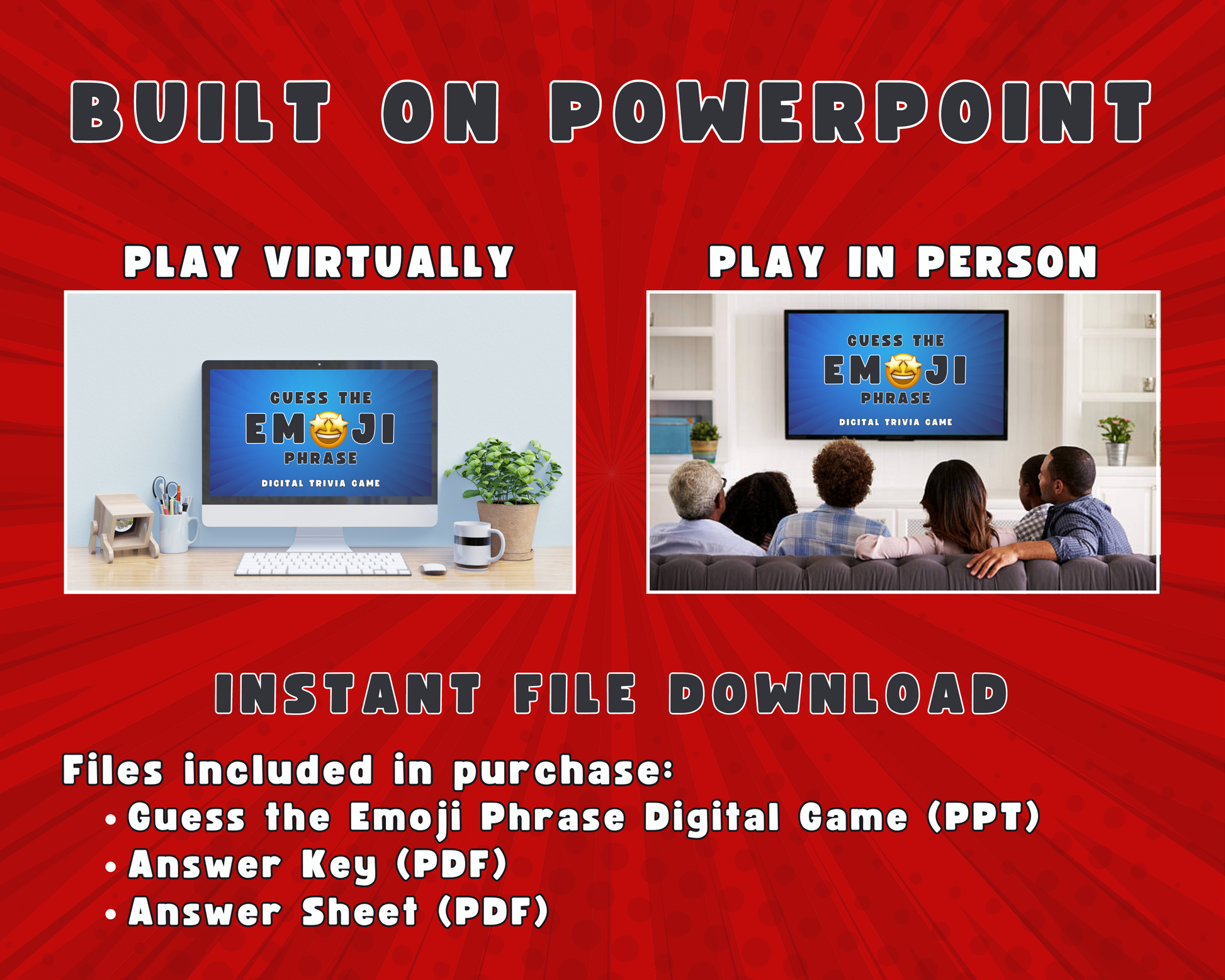 This game is built on PowerPoint and can be played virtually or in-person!