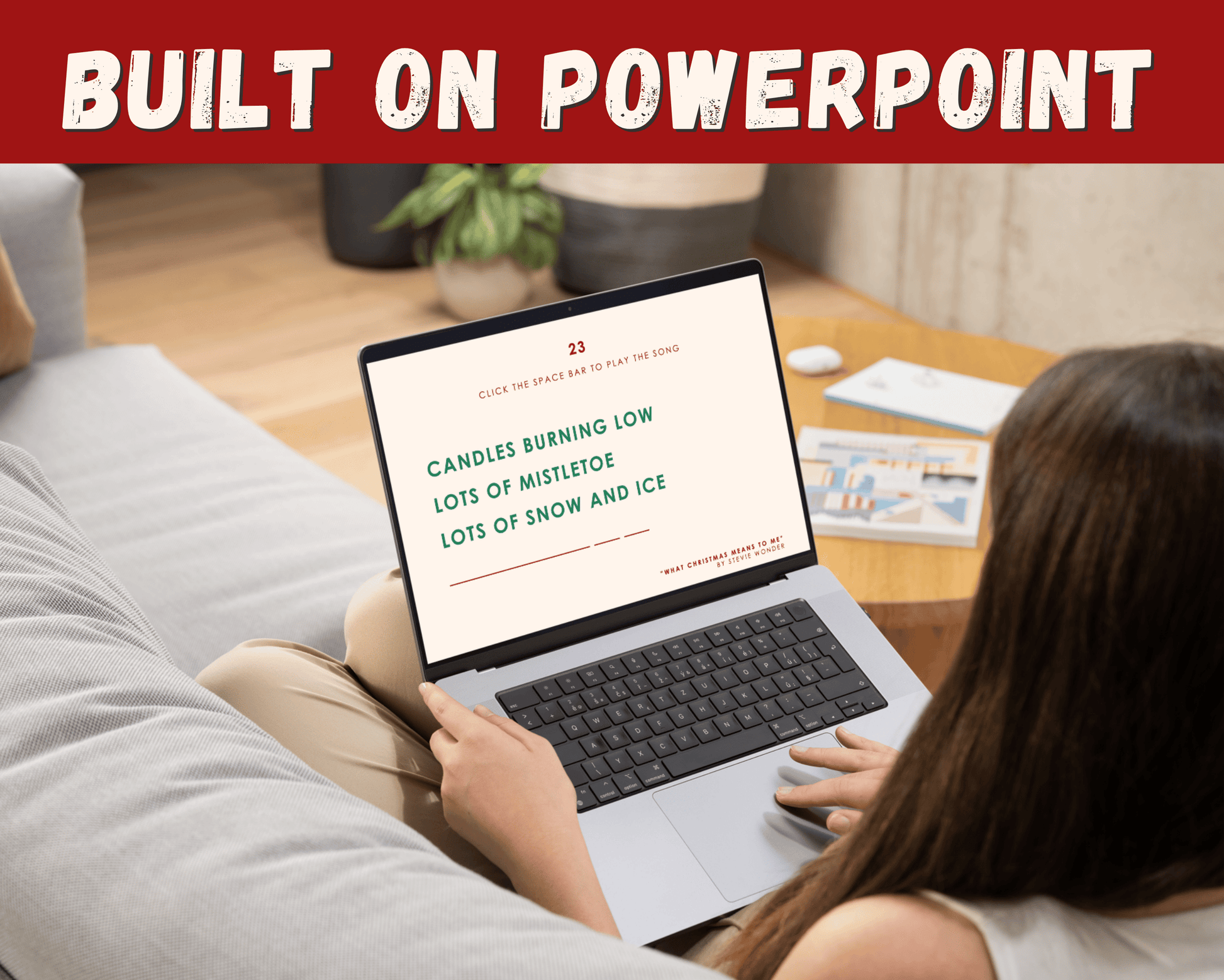 The Finish the Holiday Lyrics Digital Trivia Game is built in PowerPoint and comes equipped with music and animations that will get everyone in the holiday spirit and singing along!