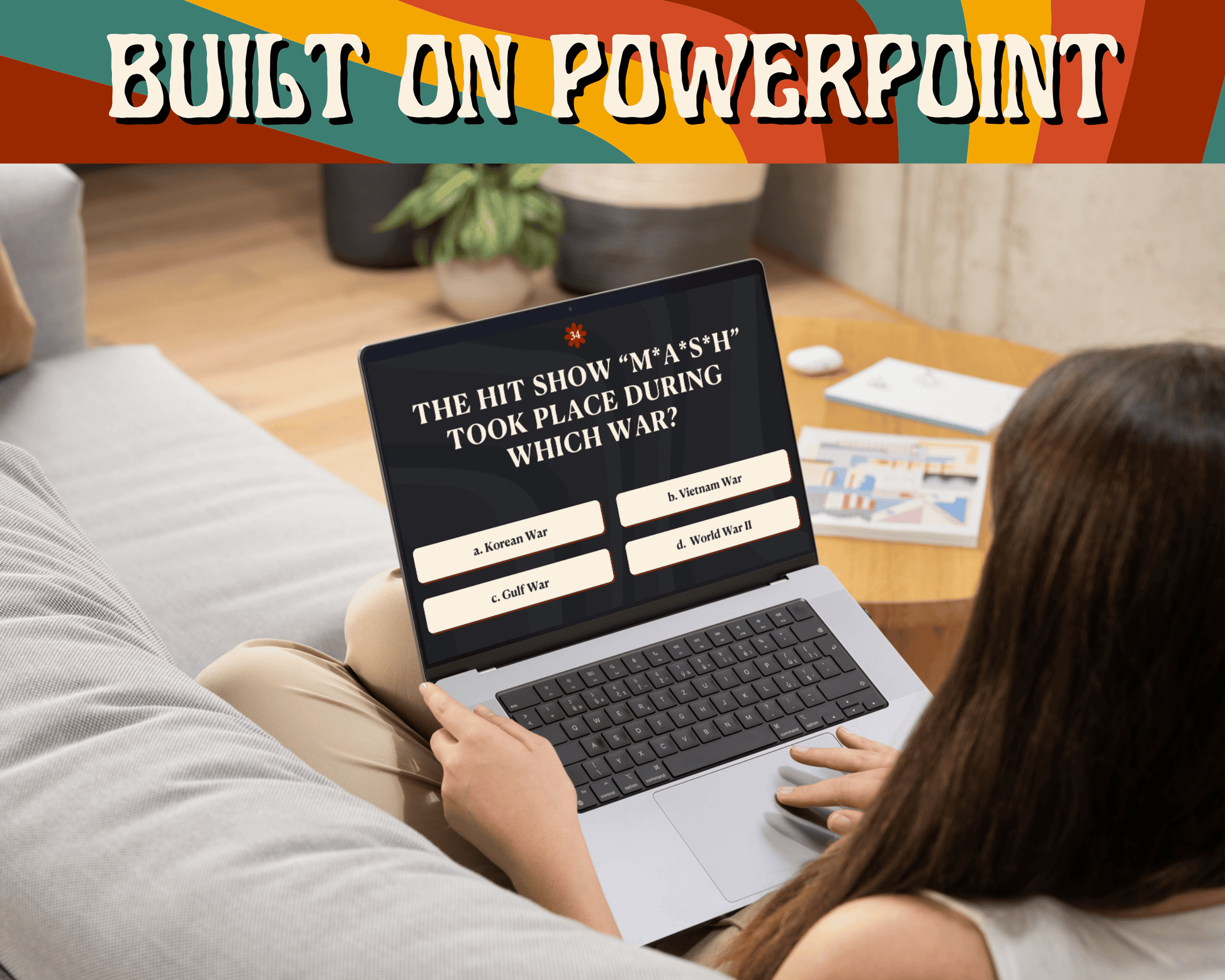 The Groovy 70’s Digital Trivia Game is built on PowerPoint and comes equipped with music, pictures and animations that will get everyone in the 70’s spirit!