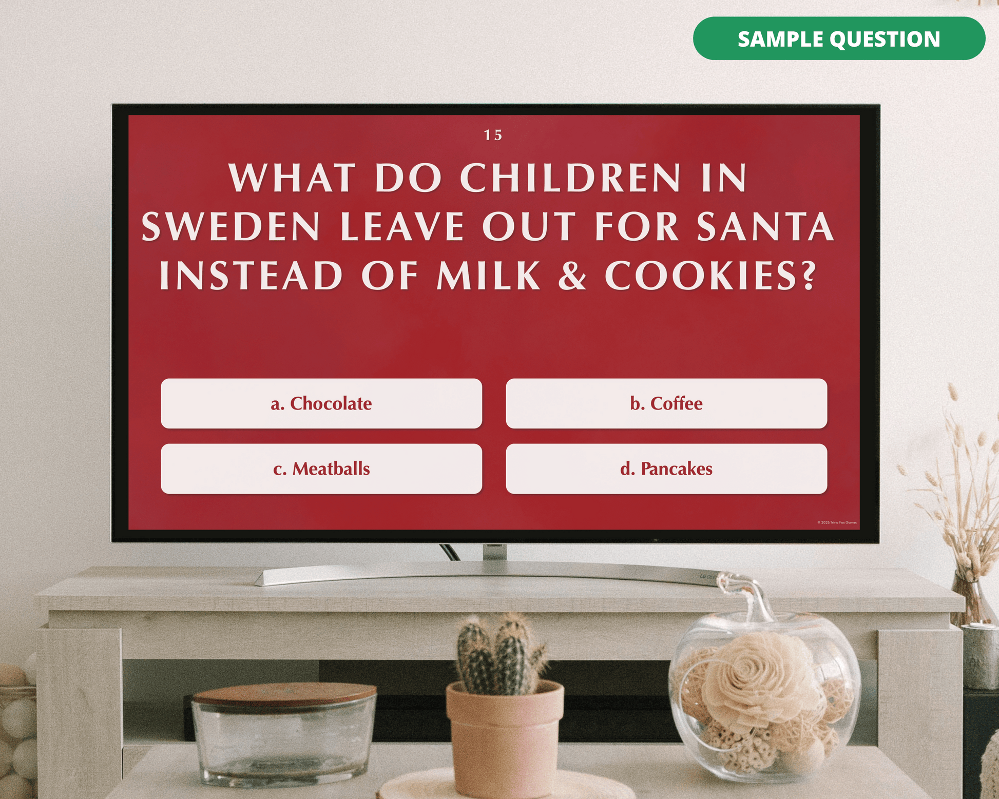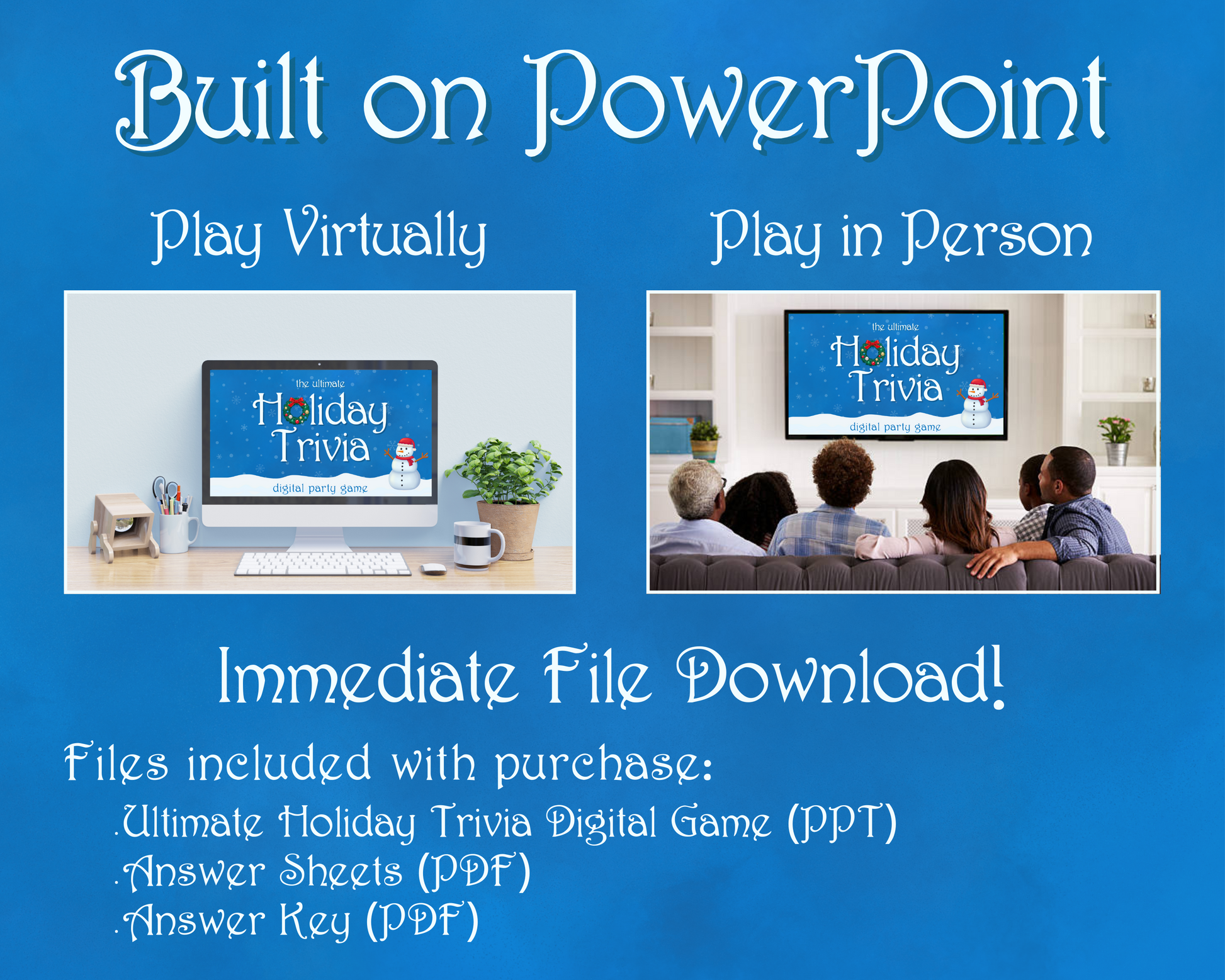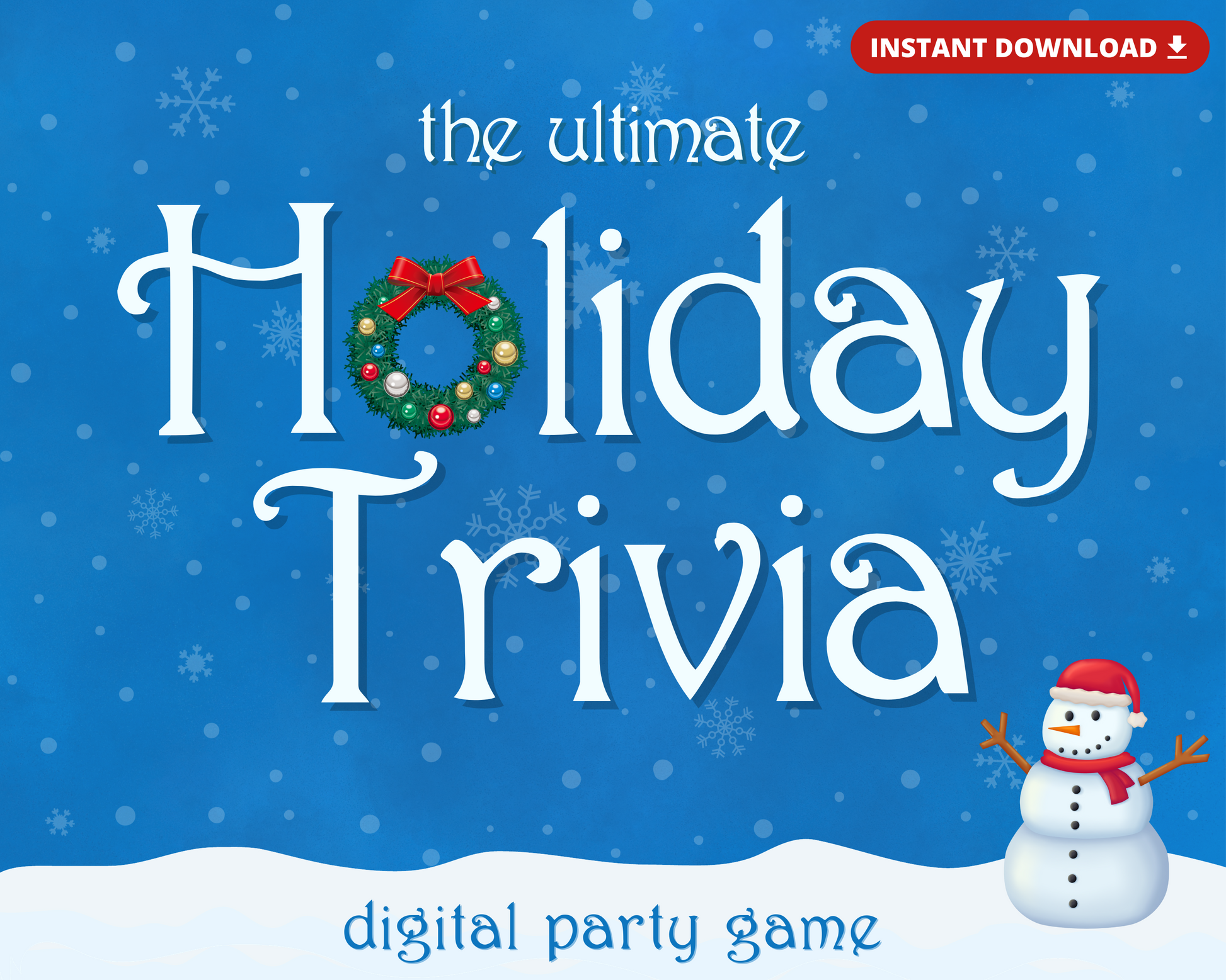 The Ultimate Holiday Trivia Digital Game is the perfect way to test your knowledge on holiday traditions, movies, music and more! Great game for your office holiday party or a Christmas party with friends.