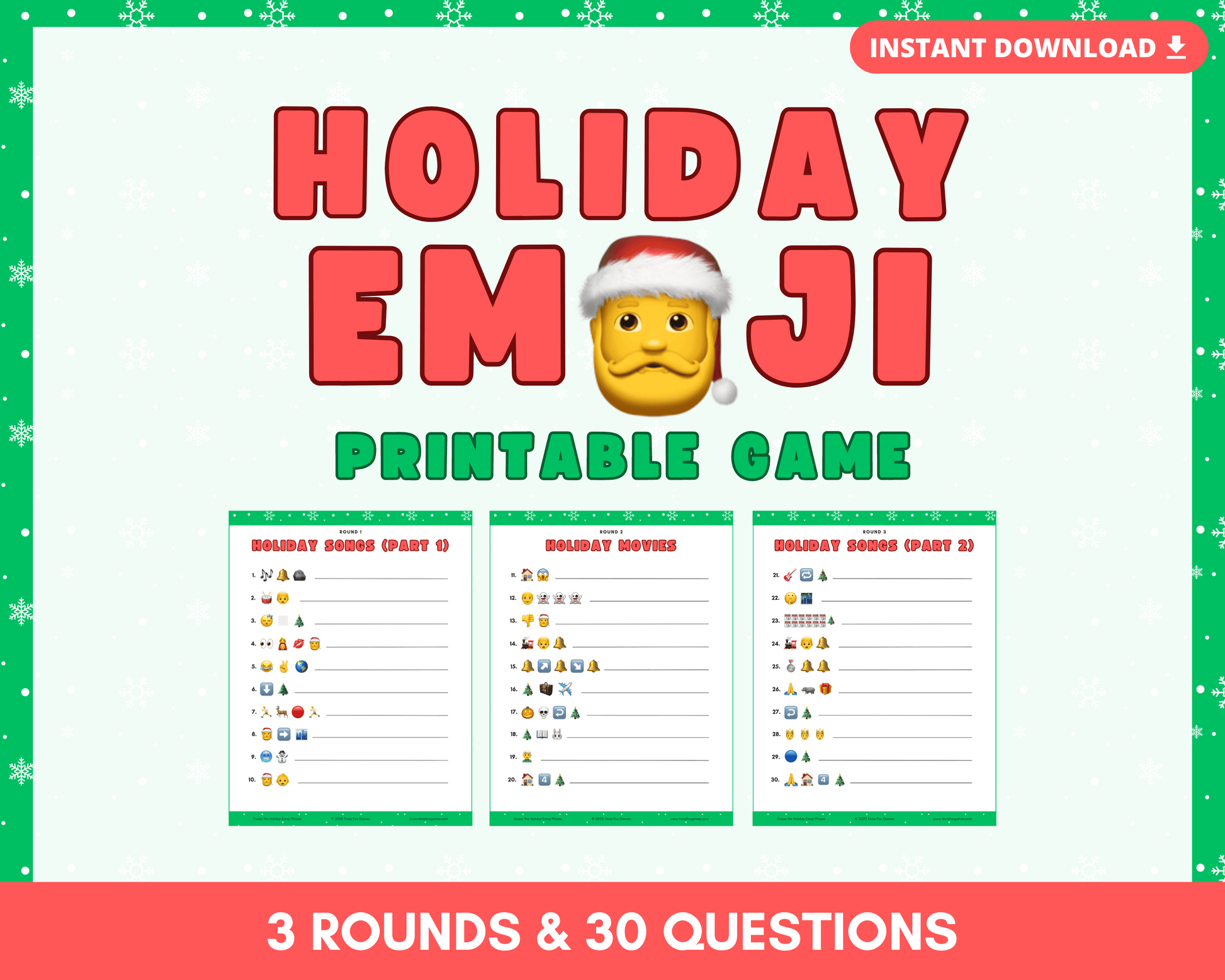 The Holiday Emoji Printable Trivia Game is the perfect way to see if you can decipher classic Holiday song and movie titles by just emoji! Perfect game for families and kid's holiday/Christmas parties!