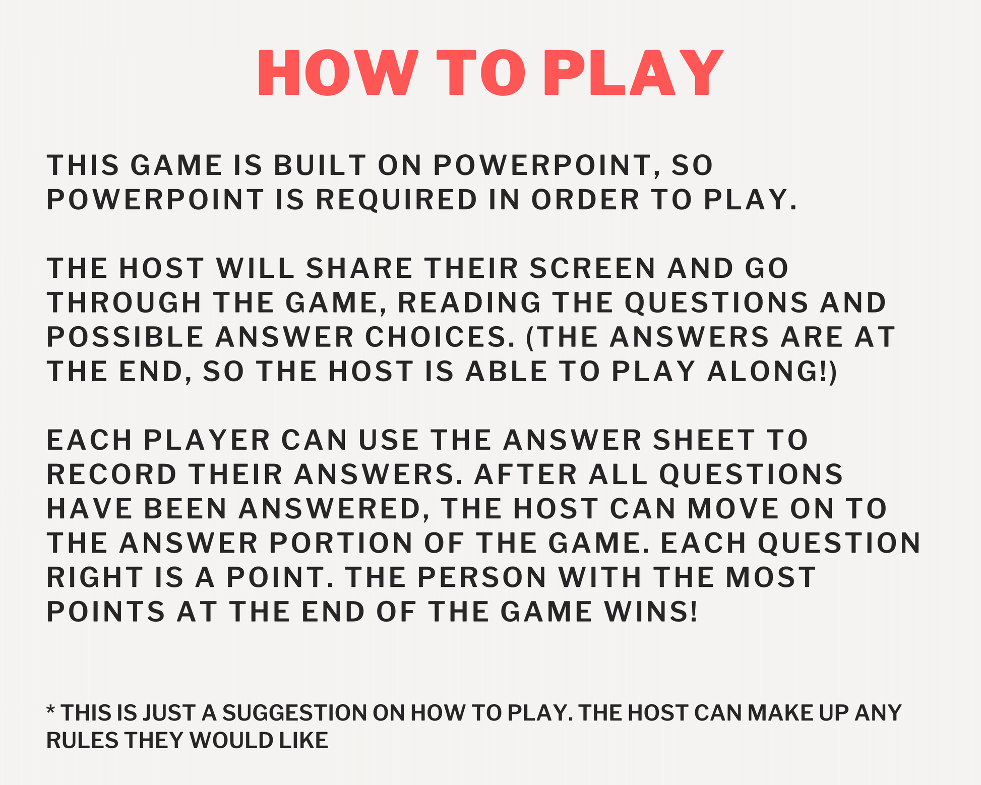This game is built on PowerPoint and can be played virtually or in-person!