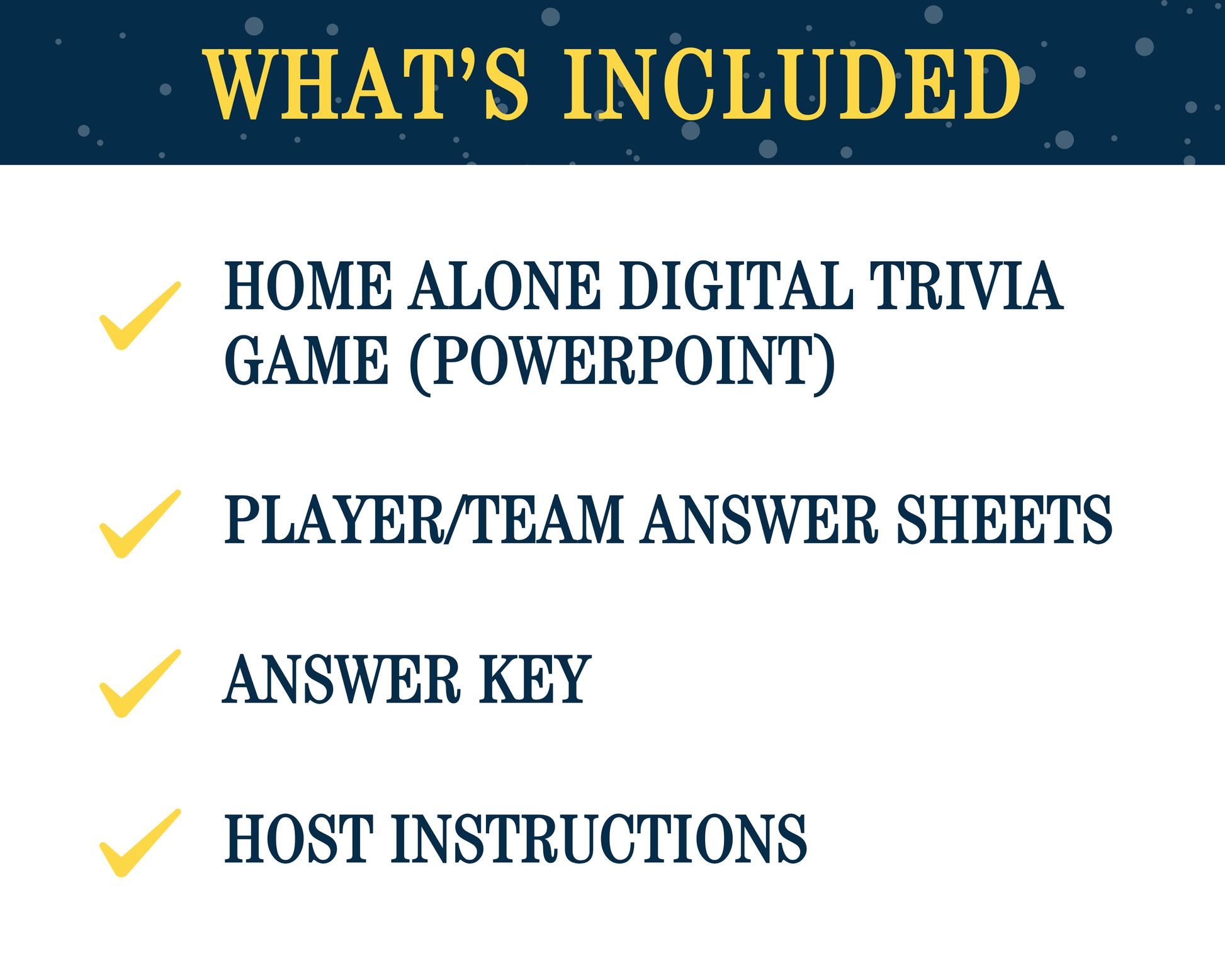The Home Alone Movie Trivia Digital Game is built in PowerPoint and comes equipped with music, pictures and animations.