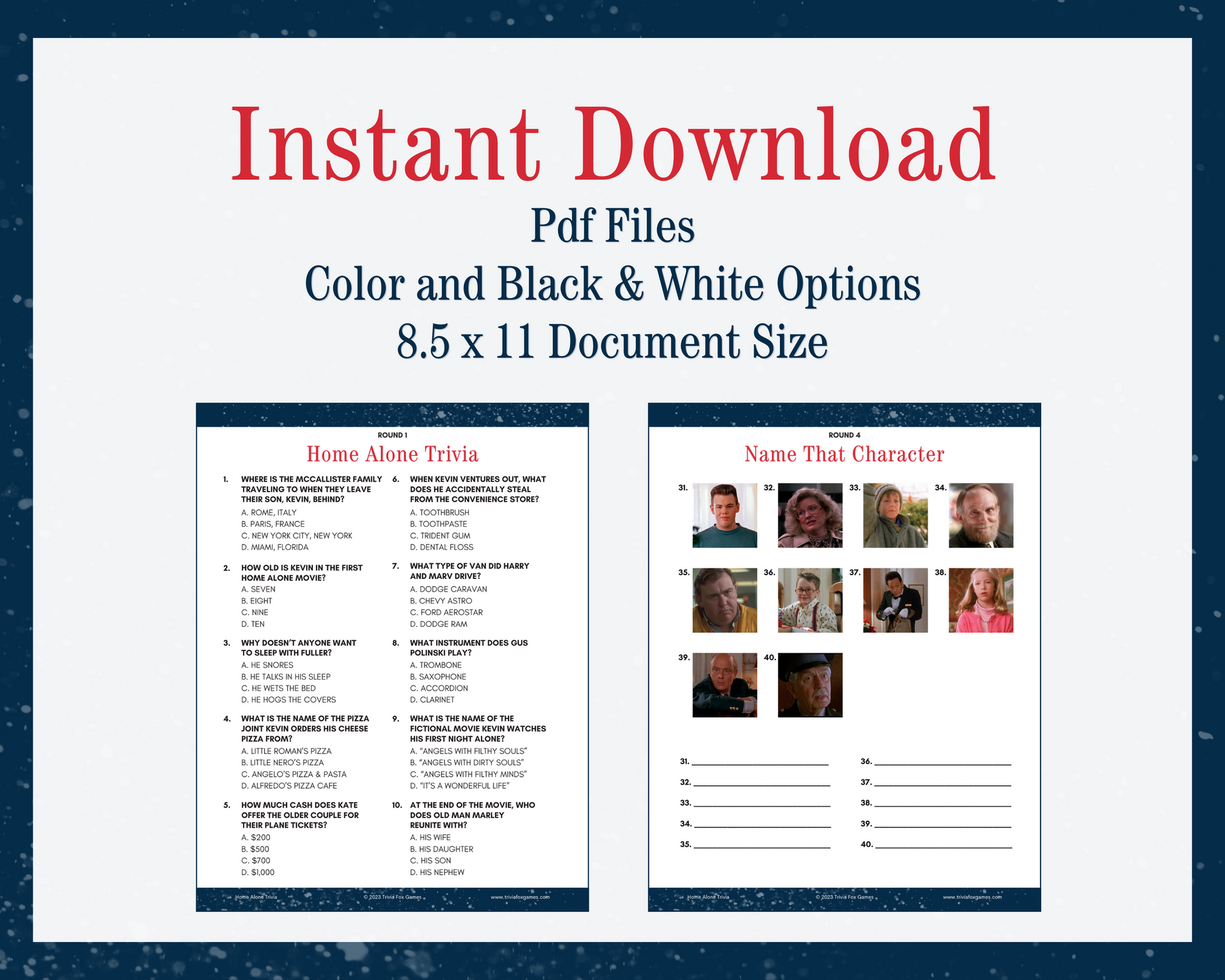 • Home Alone Trivia Answer Sheets (PDF)