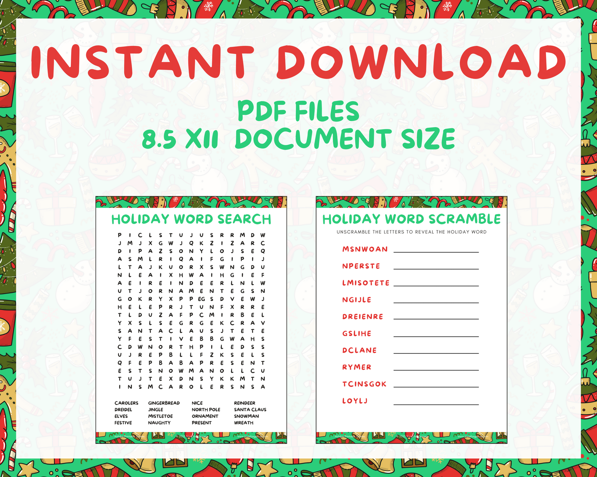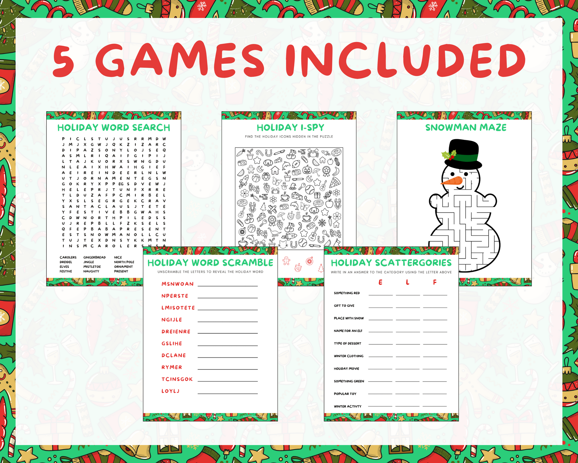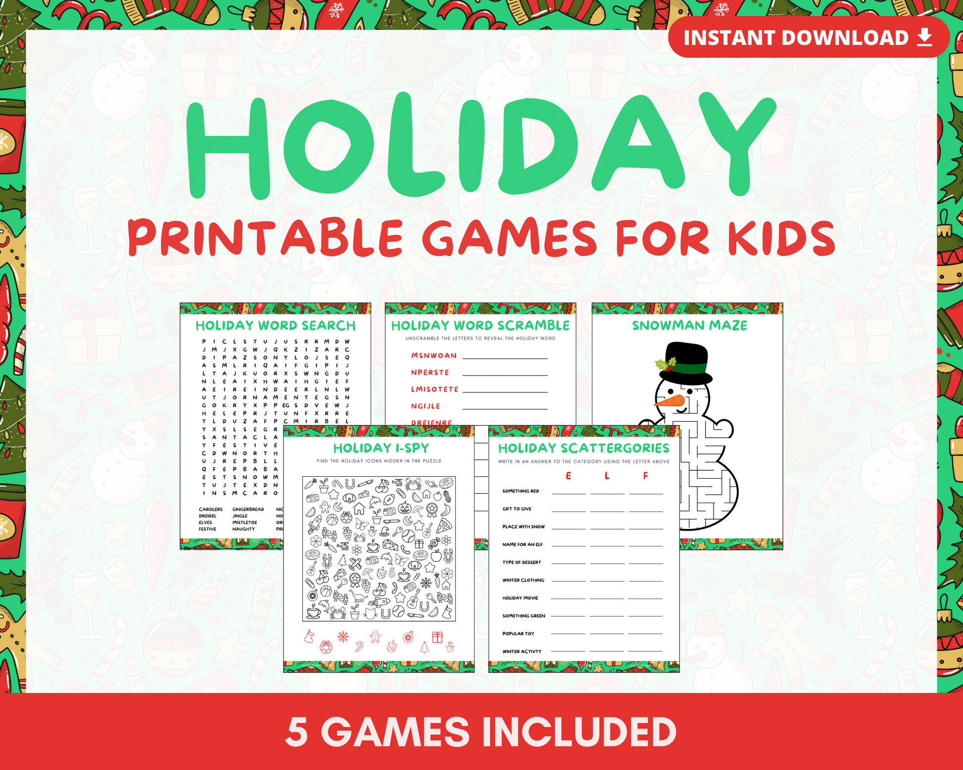 • Kids Holiday Printable Games Bundle (PDF)