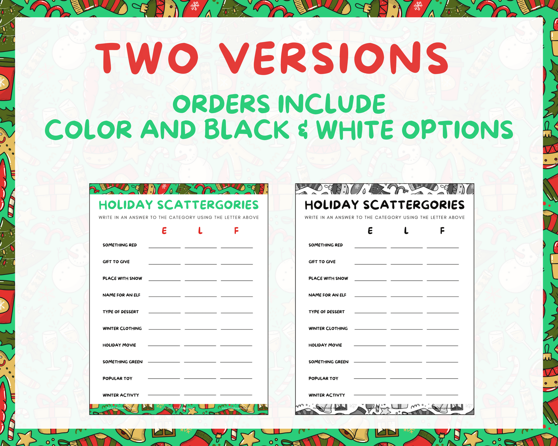 • Holiday Scattergories
