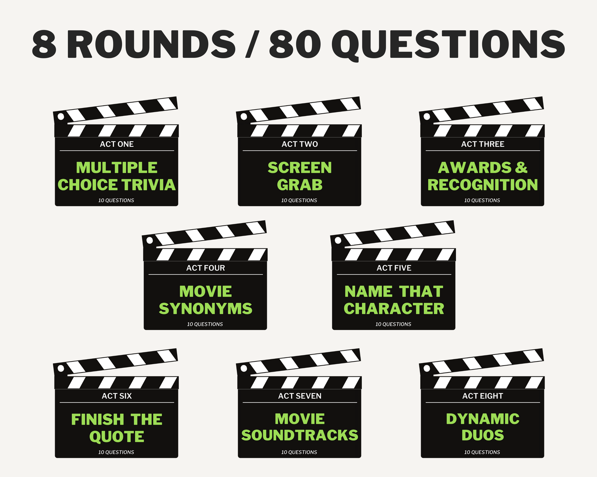 The Ultimate Movie Trivia Digital Game is the perfect game to test your knowledge on all-things movies! You and your friends will have over an hour of fun playing.
