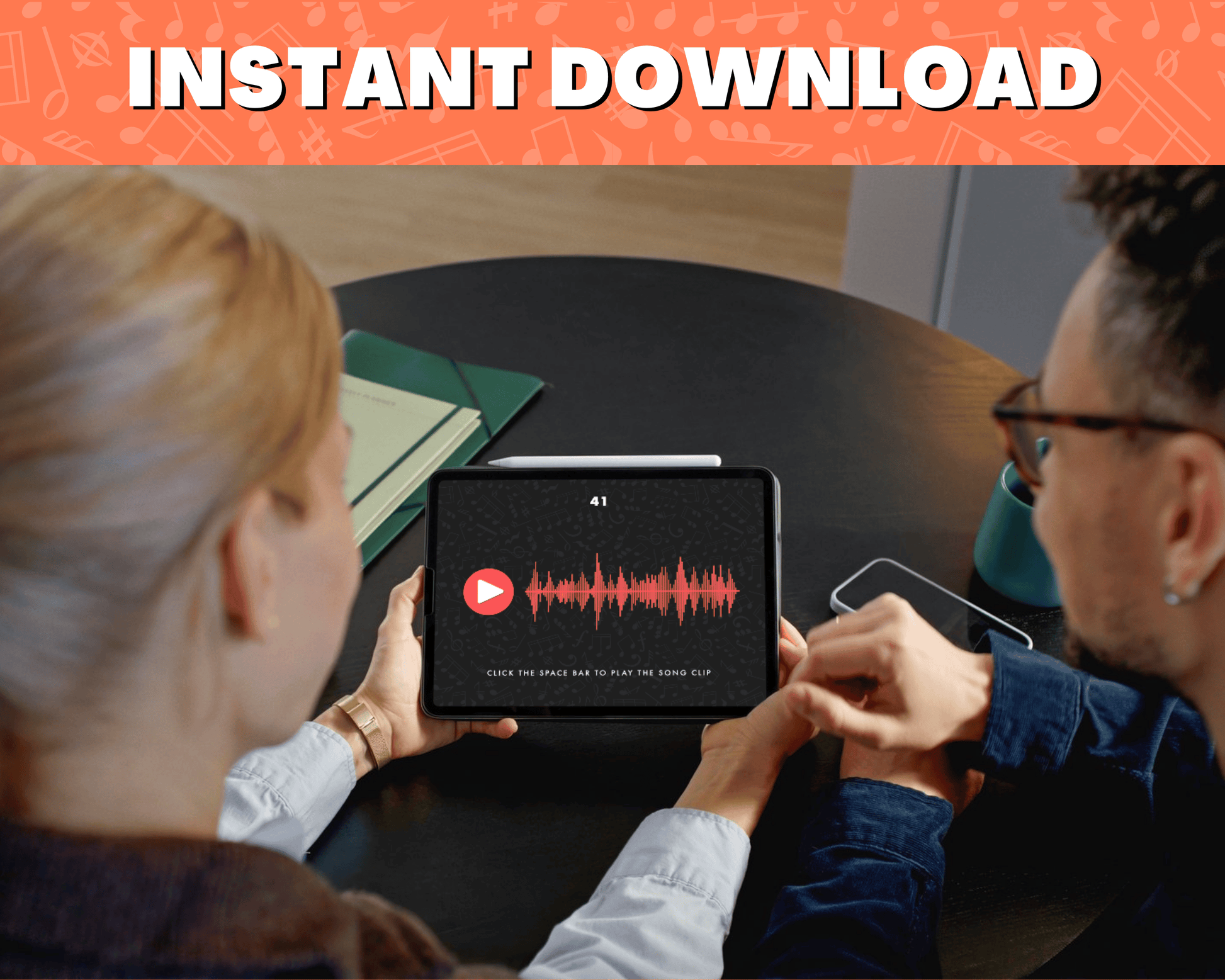 The Name That Tune Digital Game is built in PowerPoint and comes equipped with 50 songs from five different music genres that will keep everyone guessing and singing along!