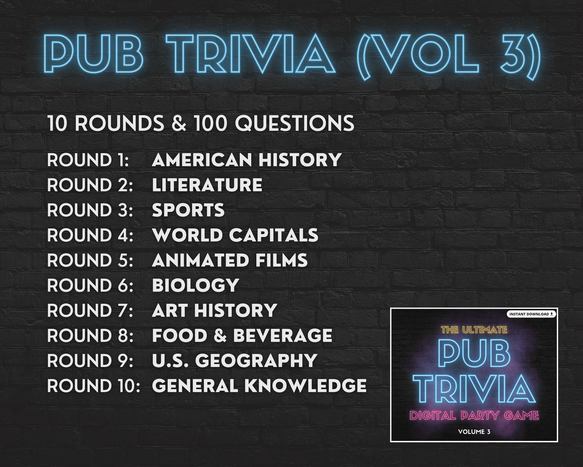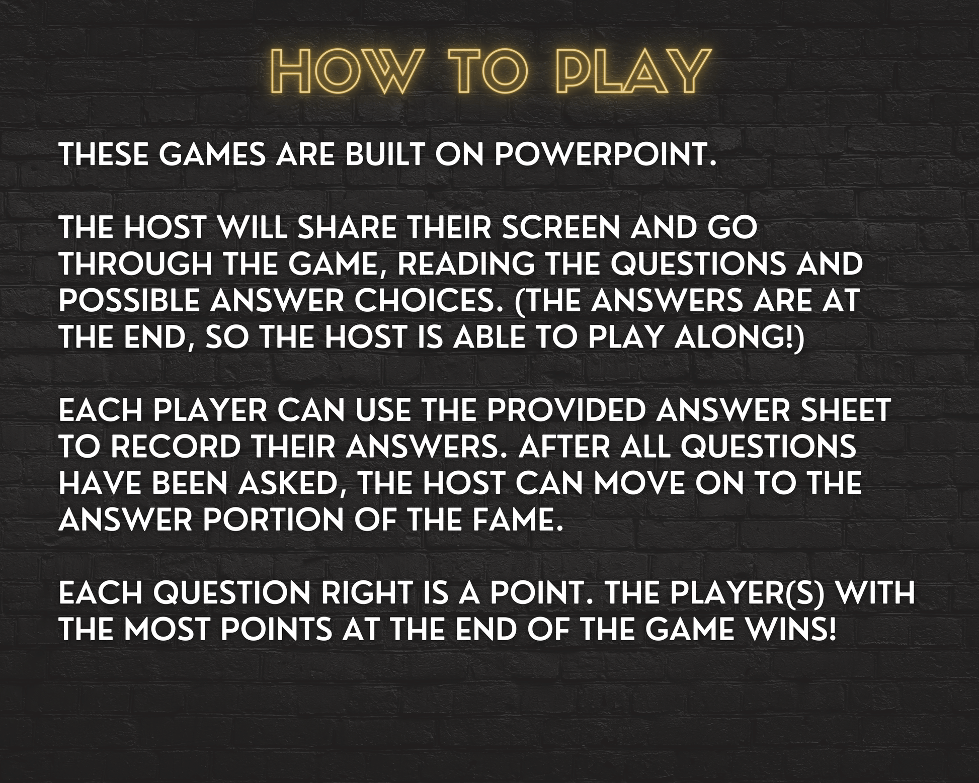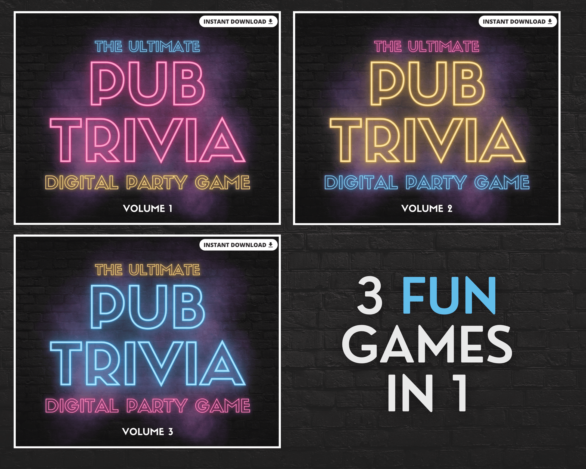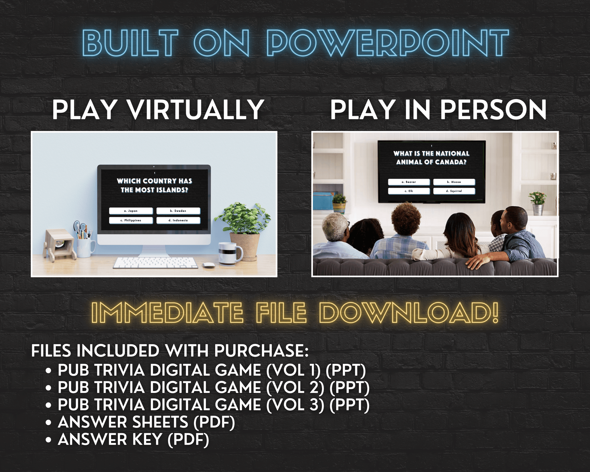 Get three of our digital Pub Trivia games for one great price! These games are built on PowerPoint and can be played virtually or in-person!