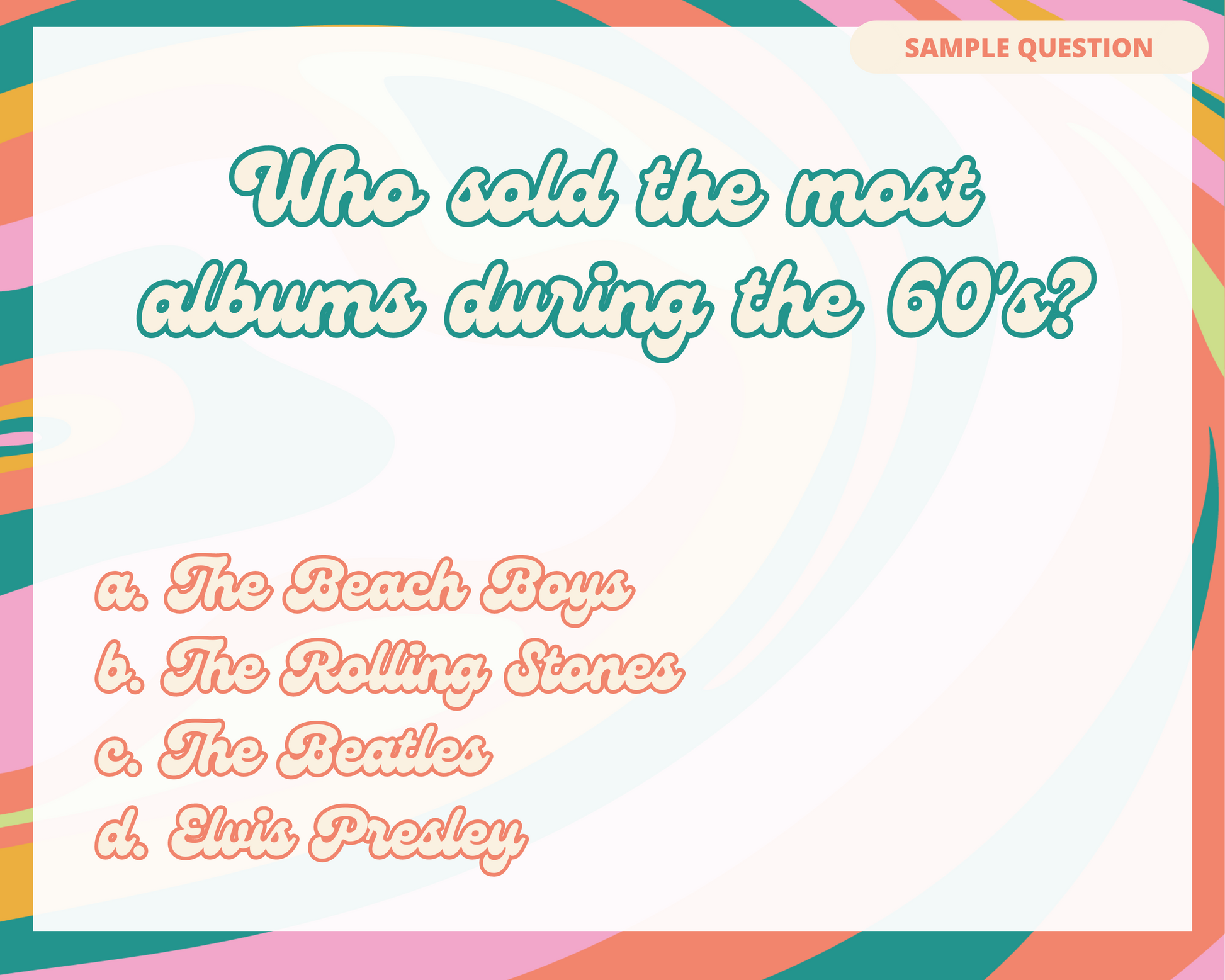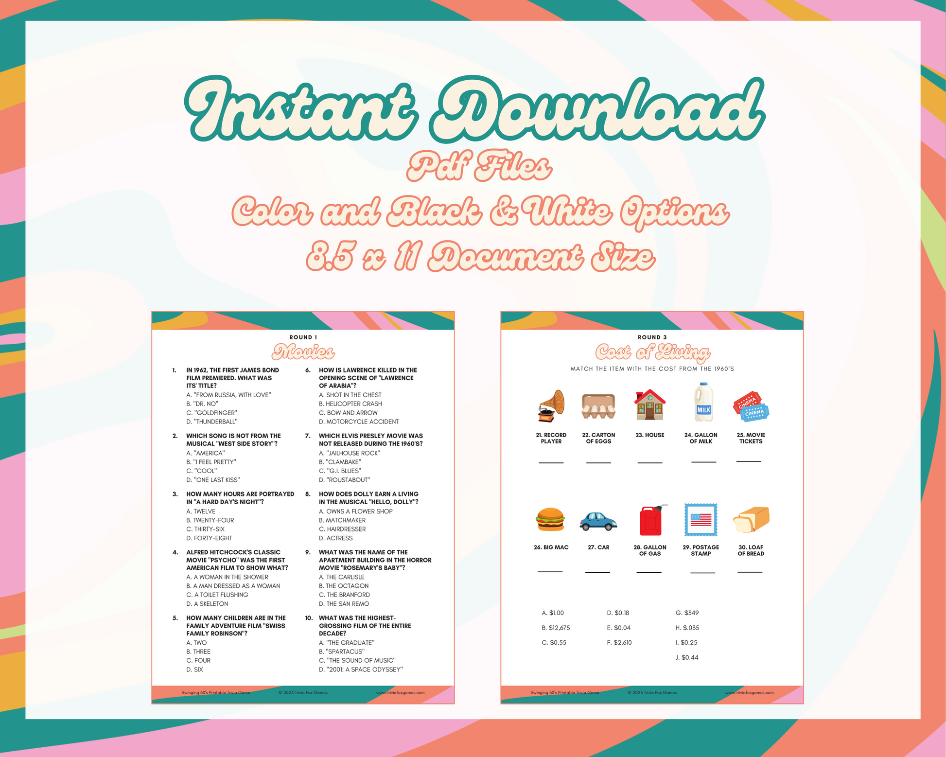 *Want to play this game digitally and/or virtually? Check out The Swinging 60's Digital Trivia Game Built on PowerPoint in our shop!*