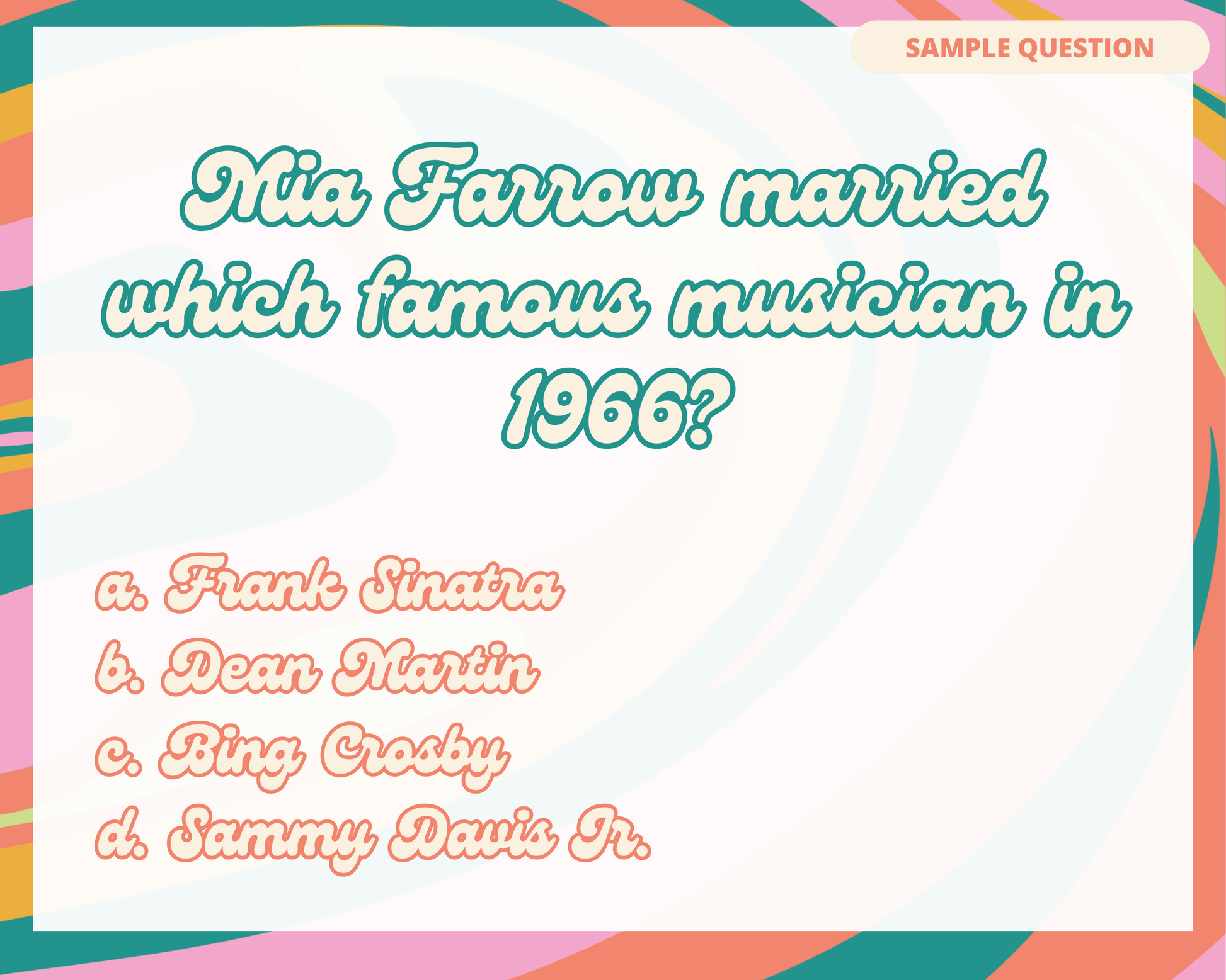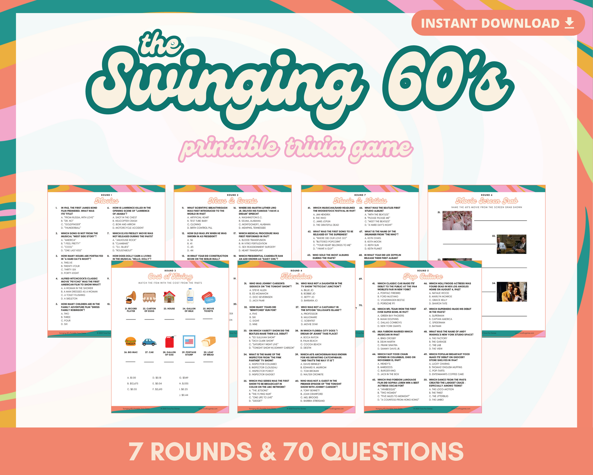 Take it back to the 60’s with this retro printable trivia game and see just how much you know about the most far out decade! This game is perfect for your 60's-themed birthday party, trivia nights, team building exercises with co-workers, or just for fun!