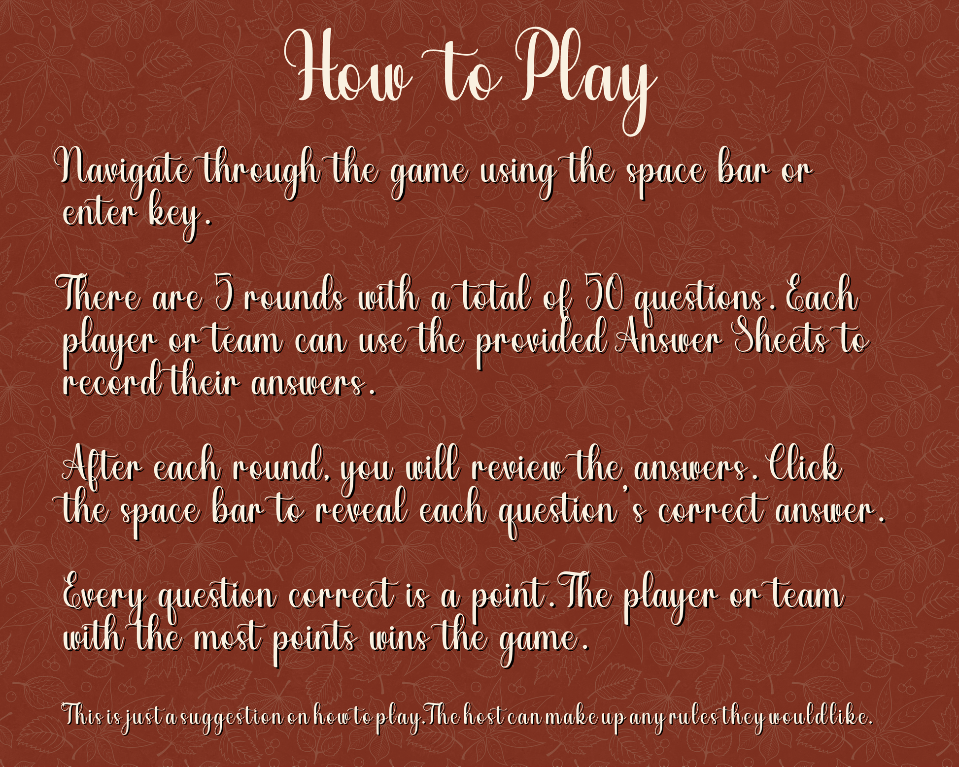 • The Thanksgiving Trivia Digital Game (PowerPoint)