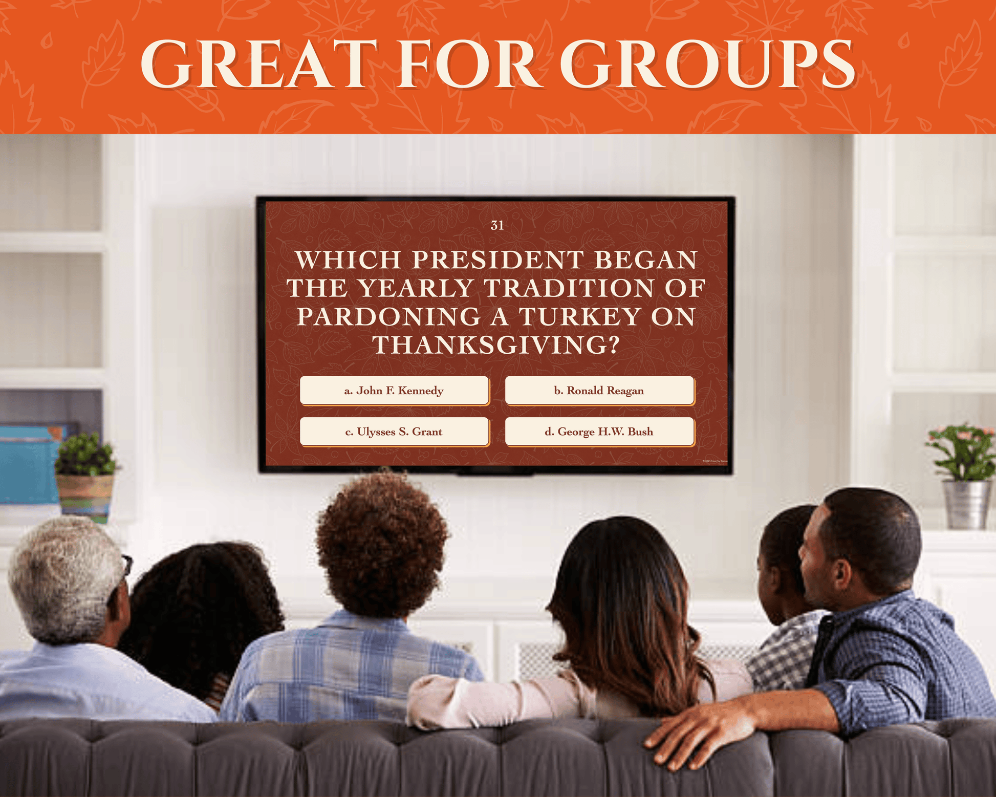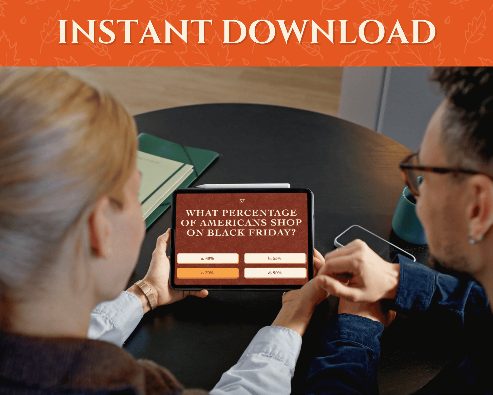 The THANKSGIVING TRIVIA GAME has 5 rounds and 50 questions spanning the history, traditions and foods of Thanksgiving.