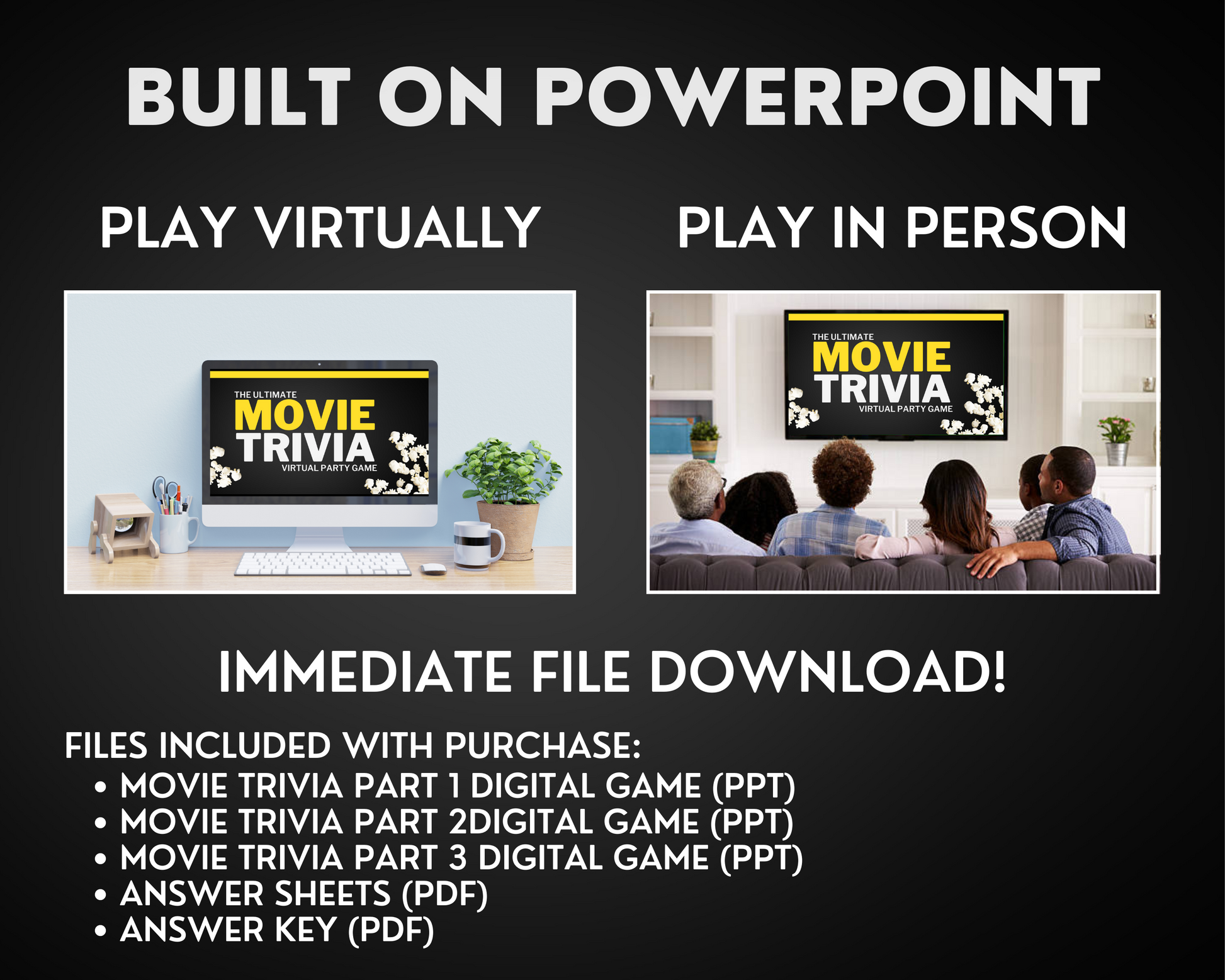 These games are built on PowerPoint and include music, images, and animations that will test your knowledge on all-things movies! You and your friends will have hours of fun playing!