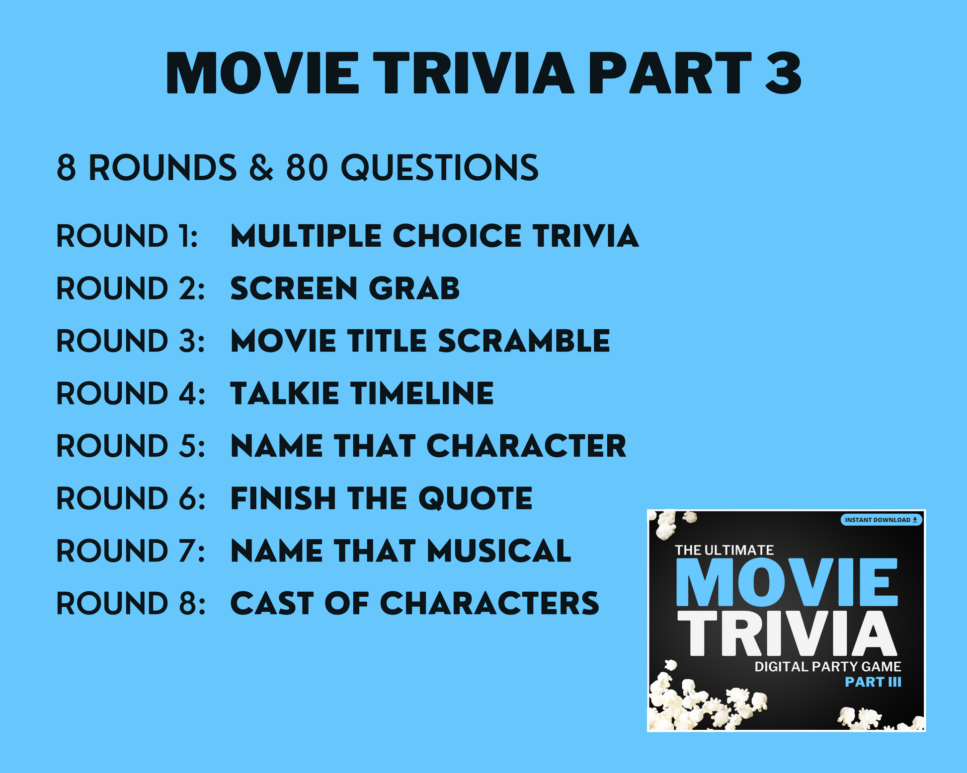 Get three of our most popular Movie Trivia Games for one great price! Games included are: