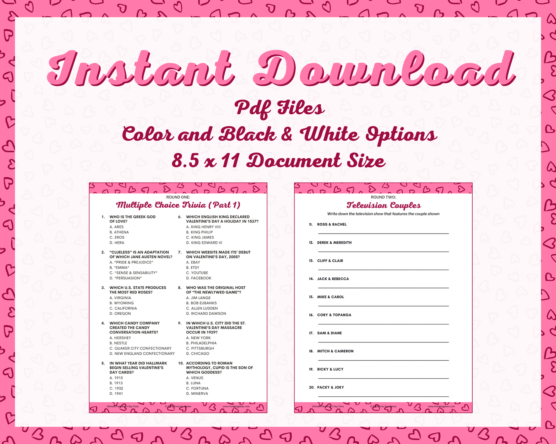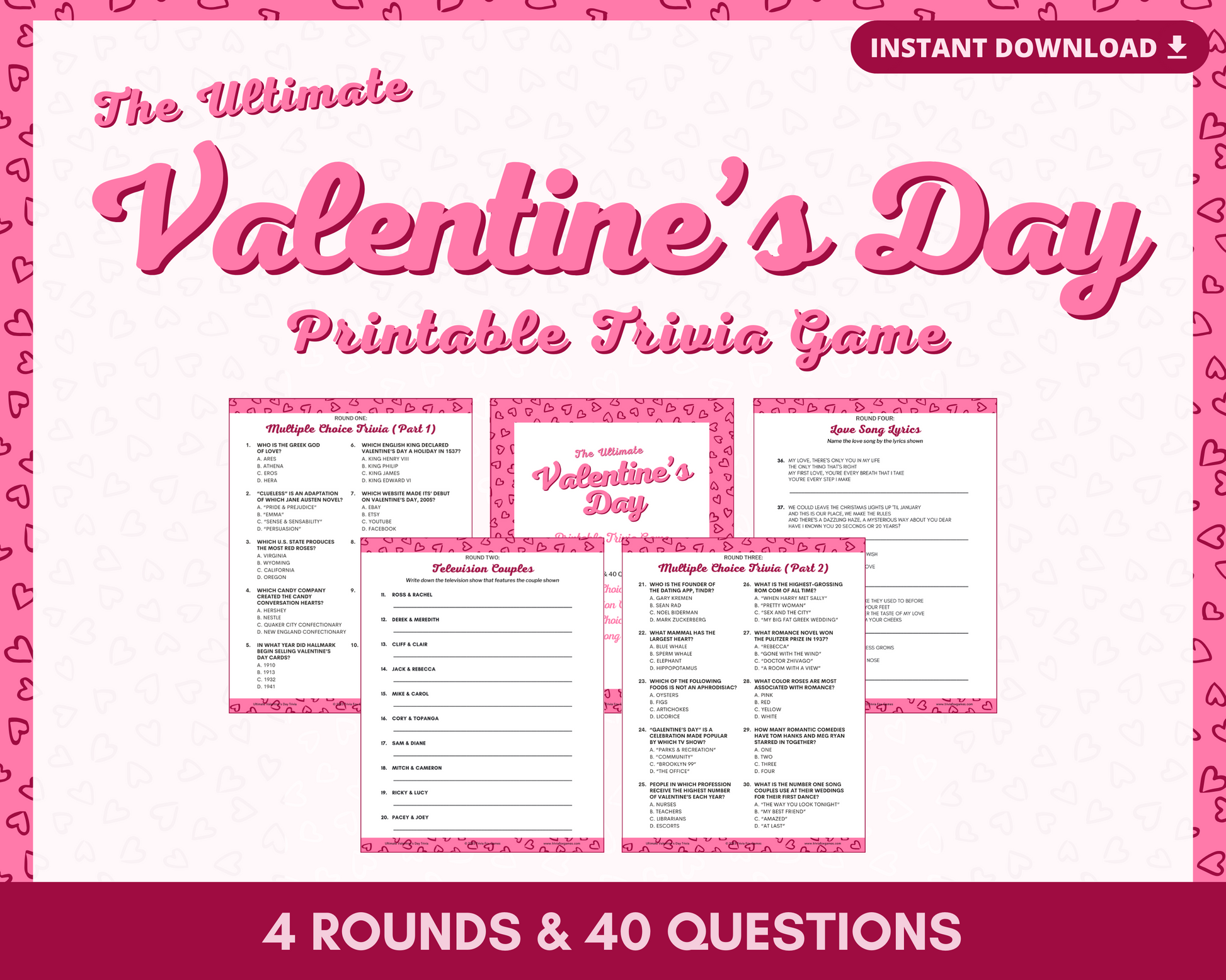 The Ultimate Valentine's Day Trivia Printable Game is the perfect game to test your knowledge on the history of Valentine's Day, romantic comedies, love songs and more!